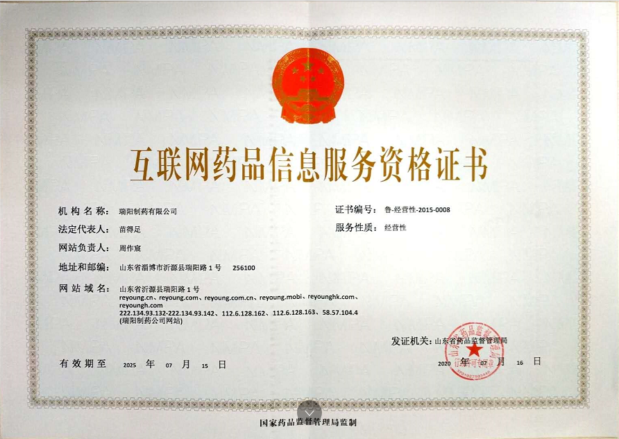互聯網藥品信息服務資格證:魯-經營性-2015-0008 營業執照
